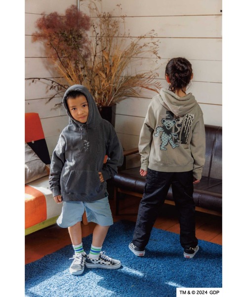 1960年代後半のヒッピーやフラワー・パワーなどに象徴されるカウンター・カルチャー台頭の中で、その中心地となったサンフランシスコでムーヴメントの象徴となったGRATEFUL DEAD 。デッドベアは、GRATEFUL DEADのアルバム『History of the Grateful Dead, Volume One(Bear’s Choice)』のアートワークで初登場。当初、彼らは「ダンシングベア」の愛称で呼ばれ、現在も世界中で愛されるマスコットキャラクター。そんなダンシングベアをバックプリントで盛大に使用した。青海波柄のダンシングベアが他にはないRIVER SIDE CULTURE ならではの味を創出している。 30/10裏毛でやや厚手のCOTTON100% 特有のナチュラル感が魅力の生地。ボディーカラーはピグメント加工を施すことでヴィンテージ感を漂わせる。 ※この製品は一部「自然な着古した味わい」を出すために、特殊な染色方法(ピグメント)を行っています。一枚一枚若干サイズや、プリントの風合い、色の出方が異なりますの、予めご了承ください。 ※撮影方法やモニターの特性により色/素材感が実物と違って見える可能性がございます。