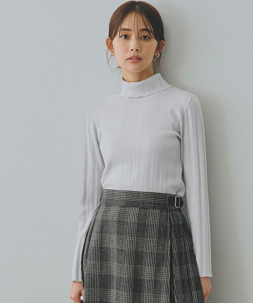 美人百花2月号【黒を使わないおしゃれ】【"あざと可愛い"真冬のデートコーデ】に掲載された商品です。 さり気ないラメが華やか オフタートルリブニットプルオーバー 【デザイン】 何色ともつかない見る角度のよって表情が変わるオーロラカラーのラメ糸を織り込んだ上品なニットプルオーバーです。 (※013カラーのみシルバーラメです。) 主張し過ぎないラメ感なので、ギラギラせず華やかでありつつとても上品な印象で着用いただけます。 ランダムリブ編みで変化を付けた縦目の編地ですっきりとした着用感です。 折り返しのオフタートルネックで冬の時期にもしっかり首元をホールドしてくれて暖かく着用いただけます。 後ろネック部分には釦開き風になっており、後ろ姿もそつがない仕上がりです。 【素材】 レーヨン混の糸を使用しており、もっちり柔らかく滑らかな風合いが特徴的です。 表情のあるランダムリブ編みで伸縮性が高く、心地よいフィット感があります。 【スタイリング】 お仕事から普段使いまで幅広いシーンで活躍いただけ、特にジャンドレや吊り系のボトムのインナーにおススメです。 ワイドパンツやボリュームのあるスカートと合わせてもバランスよく、ラメ感が華やかさをプラスしてくれます。 ※照明の関係により、実際よりも色味が違って見える場合があります。また、パソコン・スマートフォンなどの環境により、若干製品と画像のカラーが異なる場合もございます。 【24AW】 モデル情報:身長166cm B80 W59 H86 着用サイズ:02(M) 店舗へのお問い合わせ商品番号:768-19046 ●製品寸法: 01(S):着丈53cm B103cm 袖丈49cm 肩幅49cm 02(M):着丈55cm B106cm 袖丈50cm 肩幅50cm 03(L):着丈57cm B109cm 袖丈51cm 肩幅51cm 04(LL):着丈59cm B112cm 袖丈52cm 肩幅52cm 05(3L):着丈61cm B115cm 袖丈53cm 肩幅53cm 備考: