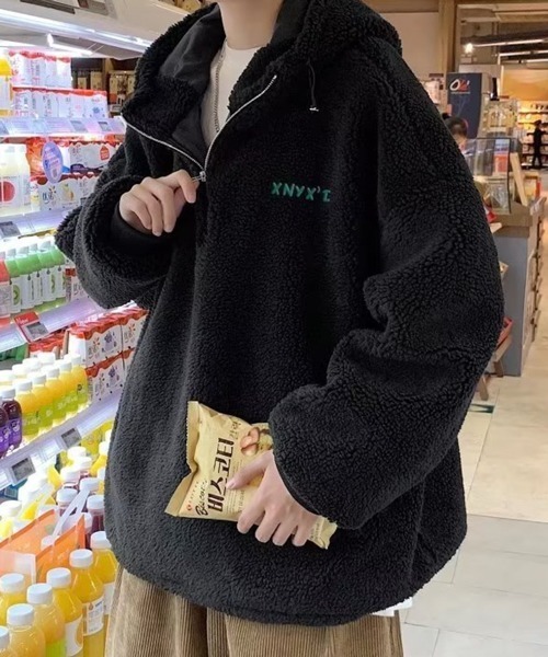 【NOWLE】ハーフジップ フーディー ボア ブルゾン フード ワンポイント 刺繍 プルオーバー パーカー ■ 暖かさとおしゃれを両立!トレンドの「もこもこ」を纏う この秋冬の主役になること間違いなしの、ハーフジップ フーディー ボア ブルゾンが登場。 見た目にもあたたかなボリューム感のあるボア素材は、防寒性とファッション性を高次元で両立させます。 寒い季節でも快適におしゃれを楽しみたい、そんなあなたの願いを叶える一着です。 ■ 旬の着こなしを作るルーズシルエットとハーフジップ ゆったりとしたルーズシルエットは、今のトレンドにぴったり。 中に厚手のインナーを着込んでもごわつかず、ストリート感のあるリラクシングなスタイルを演出します。 また、首元をすっきり見せたり、インナーとのレイヤードを楽しめるハーフジップ仕様は、着こなしの幅を広げる万能なディテールです。 フード付きのデザインがカジュアルな雰囲気を強調し、どんなボトムスとも相性抜群です。 ■ 定番カラーで着回し力抜群!ユニセックスで楽しむ 飽きのこないグレーとブラックの2色展開で、どんなコーディネートにも自然に溶け込みます。 胸元にあしらわれたワンポイントの刺繍が、さりげないアクセントをプラス。 性別を問わないデザインなので、カップルでお揃いにしたり、シェアして着るのもおすすめです。 デニムやワイドパンツ、スカートなど、合わせるアイテム次第で多様な表情を見せてくれる、着回し力バツグンのアウターです。 【NOWLE(ノウル)】 now+owlの造語で幸福の鳥owl(フクロウ)をモチーフにしたブランド名 "今"と"幸福"を大切にという想いを込めて立ち上げたセレクトブランドです。 【NOWLEの新着情報について】 ▼商品のお気に入り登録 完売カラーの再入荷通知や、ラスト1点の通知、セールの通知も受け取ることができます。 ▼ブランドのお気に入り登録 新商品や再入荷等、いち早く"NOWLE"のお得な情報を受け取ることができます。 ※こちらの商品の画像はサンプルを使用しているため、一部製品と仕様が異なる場合がございます。 ご覧のモニター環境や撮影環境により実際の商品と多少色味が異なって見える場合がございます。 この点をご了承の上、お買い求めください。ご理解の程よろしくお願いいたします。 ポイント! ボアブルゾン ハーフジップ フーディー プルオーバー ボアジャケット もこもこ ルーズシルエット ビッグシルエット オーバーサイズ ユニセックス ペア お揃い ストリート カジュアル 防寒 アウター 刺繍 秋冬 韓国ファッション CZ_0008