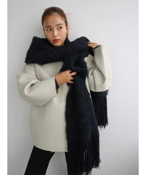 【Item Comment】ふんわりとした起毛感がシーズンムードを高めてくれるフリンジストール。 毛足長めのシャギー素材が心地よく軽い付け心地で、 ボリューム感もあるため保温性も抜群。 両端にあしらわれた細かいフリンジは、 揺れ感が女性らしさを引き立て、大人のこなれ感を演出。 長さがあるためお好みのアレンジでお使いいただけます。 シンプルになりがちな冬のスタイリングにアクセントをつけてくれるアイテムです。 【Color Variation】 KHAKI/BLACK/IVORY/BLUE ※着用画像は実際の商品とお色味が多少異なる場合がございます。 【Model】 Director(佐野真依子):162cm 【 “お気に入り登録”でお買いものが便利に! 】▼商品のお気に入り登録完売カラーの再入荷時や、ラスト1点の時、セール開始時にお知らせします。 ▼ブランドのお気に入り登録新商品や再入荷、セール情報など、 いち早くTRUNC88のお得な情報を受け取ることができます。ぜひご活用ください。