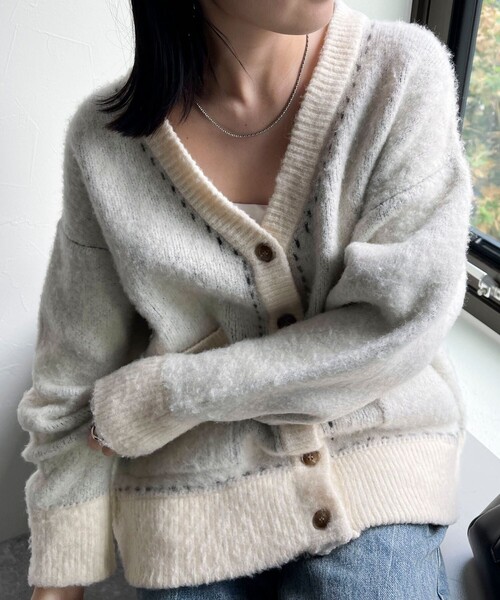◇fredy emue◇ 【2024 AW】 ゆったりあったかなニットカーディガン ●point ・オーバーサイズでお尻も隠れるくらいのミディ丈ニットカーディガンです ・ジャガードの柄で配色ステッチ風の柄を入れたデザインがポイント◎ ・起毛加工しているので表面のふわっと感もポイントです ・ゆったり目のシルエットで腰回りが隠れて体形カバーも叶います ・チクチクしない肌触りの良いニット素材で着心地も抜群! ・寒い時期にはインナーにタートルネックを合わせて、長い期間着回しを楽しんでいただけます 透け感:なし 裏地:なし 伸縮性:あり 光沢感:なし 洗濯:手洗い可 ●お取扱い上のご注意● *商品を長くご愛用していただきたいため、アテンションタグがある場合は必ずご確認の上、着用又はお取り扱い下さい。 *画像の商品はサンプルとなりますので実際の商品と仕様(主にファスナー・釦等の付属品)、加工、サイズが若干異なる場合がございます。 *店頭及び屋外での撮影画像は、光の当たり具合で色味が違って見える場合があります。商品の色味は、スタジオ撮影の画像をご参照下さい。 *商品画像に関しては出来る限り忠実に表示出来るよう努めておりますが、お客様がご利用のモニターの設定及び特性により、実際の商品と比較し色味に若干の誤差が生じる場合があります。 *製品洗い加工の商品は、多少の歪み、シワなどが見られたり、風合いやサイズ等が1枚1枚異なります。汗や雨等で濡れた時や、摩擦により色落ちし、他の衣料を汚すことがありますので(特に濃色のもの)ご注意ください。 ※サンプルでの採寸のため、サイズ表はあくまで目安となります。予めご了承ください。 ◇商品のお気に入り登録◇ 【お気に入りに登録 ♡マークをクリック】を是非ご活用ください! 再入荷の通知や、ラスト1点の通知、セールの通知がいち早く届きます。 ◇ブランドのお気に入り登録◇ 新商品や再入荷など、いち早くブランドのお得情報が届きます。