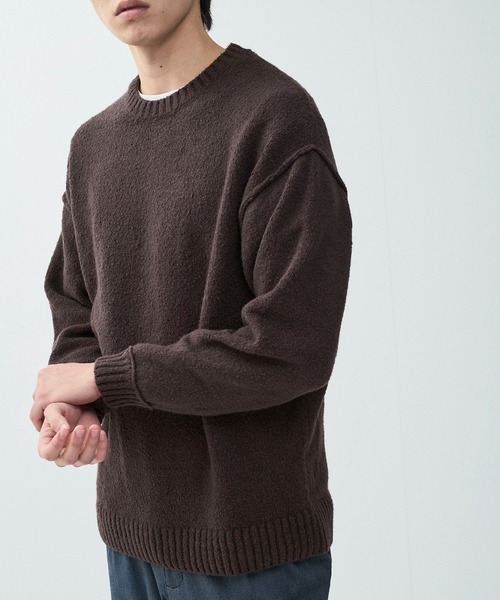 【素材】 コットン素材のブークレ編みの生地を使用。 生地の度詰の密度も高く、コットンだけどウール並みに暖かい素材です。 【デザイン・シルエット】 シンプルなクルーネックデザインのプルオーバーニット。 毛足がループしている表面感で柔らかく、触ってもチクチクせずに肌触りが良いのが特徴的な素材。 ウールの素材感や匂いが苦手な方にもオススメです。 サイズ感もそこまで大きくなく、コーディネートを選ばずに着やすいベーシックなデザイン。 【スタイリング】 シンプルなデザインなので、ストレートパンツと合わせたキレイめなスタイリングや、ワイドパンツと合わせたリラックス感のあるスタイリングなどがオススメです。 裏地:なし 透け感:なし 伸縮性:あり 生地感・厚さ:普通 ポケット:なし その他仕様:なし profile:『j.n.r.d』 【CHANGE TO NEW STANDARD】をブランドテーマとして掲げ、トレンドを取り入れた新たなスタンダードアイテムを毎シーズン作り出し、 【ただシンプルで着やすいスタンダード】という概念から脱却して、常にお客様に新鮮さを与えることを目指しているブランド。 ※撮影場所やライティング、お使いのモニター環境によって色の見え方が異なる場合がございます。 ※商品のカラーは詳細画像の色味をご参照ください。 【 ー information ー 】 ▼商品のお気に入り登録 完売カラー・サイズ、再入荷通知やラスト1点の通知、セールの通知も受け取ることができますのでお気に入り登録をお忘れなく。 ▼ブランドのお気に入り登録 ZOZO限定商品・新商品や再入荷など、いち早くブランドのお得な情報を受け取ることができますのでご登録お願い致します。
