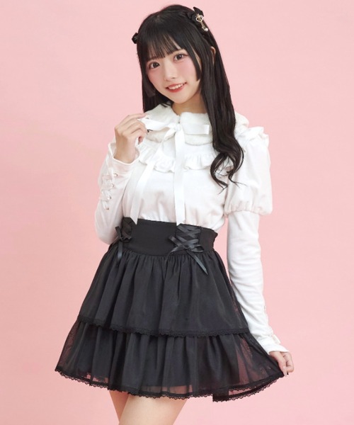 光沢感と透け感のある生地がおしゃれ!ウエストのレースアップはワンポイントに☆ふんわりと広がるティアードスカートは、女の子らしさを高めてくれます♪インナーパンツ入りが嬉しい。♡Secret Honey♡(シークレットハニー)レトロガーリーなテイストにトレンドを取り入れ、キュートな中にも少しだけ大人な感覚を表現。シルエットや気やすさの追求と、繊細で凝ったデザイン・ディティールへのこだわりを持ちつつ、リーズナブルな価格で展開します。★お気に入り登録してSecret Honey(シーハニ)の最新情報を手に入れよう★・「商品のお気に入り登録」で再入荷や、在庫ラスト1点、セールなどの通知を受け取ることができます。・「ブランドのお気に入り登録」で新商品や再入荷など、最新情報を受け取ることができます。