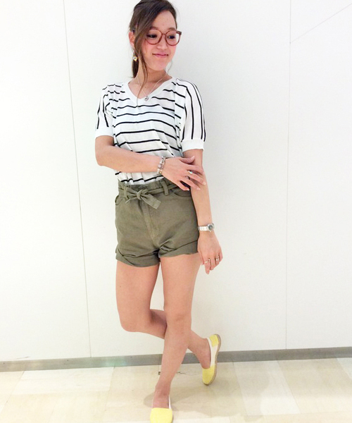 ボリューム感が特徴のショートパンツは、ウエストの共布で絞って穿く仕様♪裾のロールアップがこなれ感たっぷりで、定番ショートパンツも今年らしく穿けちゃいますよ!トップスをインして、ウエストリボンをアピールする着こなしもおすすめ☆【モデル身長:167cm・着用サイズ:MEDIUM】