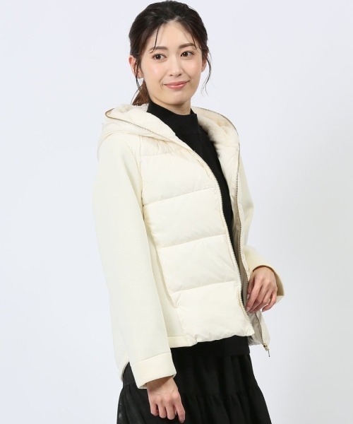 ■素材特徴 前身頃はポリエステルタフタを使用した中綿入りのキルティング生地、袖・後身頃はカットソーをボンディングさせた厚手の生地を使用しています。前身頃にはポリエステルの中綿入りで、適度なボリューム感と優れた保温性が魅力です。 ■デザイン フード裏のもこもことしたフェイクファーが可愛い、ショートブルゾンです。カットボンディング×中綿入りキルティングで切り替えたデザインで、ありそうでなかった1枚に仕上げています。ふんわり羽織れば抜け感のあるスタイルに。 ■シルエット スタイルアップが叶う、コンパクトなショート丈です。前身頃は、スッキリさがより際立つ着丈に設定しています。 ■コーディネート スタイリングのバランスが取りやすいショート丈なので、カジュアルからエレガントまで幅広いコーデに馴染みます。綺麗目なブラウスやスラックス、動きの出るスカートと相性抜群。バッグや靴と色味を合わせると洗練されたスタイルに仕上がります。 フィット感:標準 シーズン:秋冬 展開カラー:アイボリー・グレー・黒(ブラック) *こちらの商品はナショナルブランドとなります。 *アテンションタグ・洗濯ネームを御確認の上、着用又は取り扱い下さい。 *光の当たる場所や高温多湿になる場所での保管は避けて下さい。 *使用の有無に関わらず、経年劣化は進行いたしますのでご了承下さい。 *生地の裁断・縫製方法により、写真と同様の柄が出ない場合がございます。 *閲覧デバイス・環境により質感・色味に誤差が生じる場合がございます。 * ZOZOTOWN お買い物ガイド 商品のお気に入り登録 ♡をクリックしましょう!完売カラーの再入荷通知や、ラスト1点の通知、セールの通知をお知らせします。 ブランドのお気に入り登録 新商品や再入荷など、いち早くお得な情報を受け取ることができます。 最短で翌日お届け 商品をカートに入れた後、注文内容の確認ページで「即日配送」を選択していただければ、最短でご注文した翌日にお届け致します。 (ZOZOTOWNお買いものガイドをご参照ください)