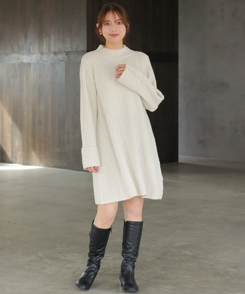 ベーシックシルエットで体型カバーも叶うミニワンピース◎シンプルなAラインのニットワンピースです。ワイドなリブがさりげなく縦ラインを強調し、スッキリとした印象に♪袖口は折り返しデザインで、上品なパール付き。1枚で着映えるディティールです。ミルドライクなふんわりとしたニットで、着心地も抜群◎ 思わず触りたくなるふっくら感がポイントです。アウター合わせもしやすいベーシックなデザインで、冬のお出かけに重宝する1枚。お足元はブーツがオススメです。【ASTORIA ODIER(アストリア オディール)】大人可愛いスタイルを提案するエレガンスブランドです。オフィス、通勤スタイルを中心に日常を楽しくさせる女性らしいアイテムを展開しています。オンスタイルからお出掛け・デートや女子会といった女性らしく魅せたい大切な日に◎組み合わせるアイテム次第で、きれい目×カジュアルのmixコーディネートも◎◆《お気に入り登録》でお得な情報を◆・「商品のお気に入り登録」再入荷、ラスト1点、セール情報などの通知も受け取ることができます。・「ブランドのお気に入り登録」新商品や再入荷など、ブランドのお得な情報を受け取ることができます。