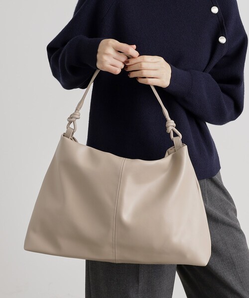【デザイン】 たっぷり容量のワイドショルダーバッグです。 肩掛け部分が太いので、肩への負担が少なく持っていただけます。 ショルダーの付け根はロープのノットデザインになっています。 口元は中が見えないようにファスナー仕様で安心です。 551カラーはハンドルが配色になっています。 【仕様】 ・ポケット数:内側×3 ・A4サイズ収納可 ※照明の関係により、実際よりも色味が違って見える場合があります。また、パソコン・スマートフォンなどの環境により、若干製品と画像のカラーが異なる場合もございます。 【24AW】 店舗へのお問い合わせ商品番号:769-02008 ●製品寸法: 00:高さ28cm 幅(上部)38.5cm 幅(下部)43cm マチ9cm 持ち手上がり22.5cm 備考:重量:約315g(サンプルサイズ)