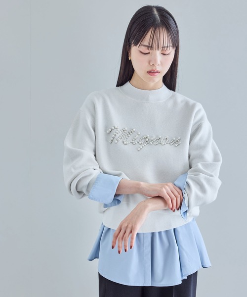 クリスマスシーズンにシンプルに華やぐロゴニットプルオーバー!◆2024-25秋冬◆ 【デザイン・シルエット】 フロントのキラリと輝くパールロゴがフェミニンな1着です。 ロゴはフランス語でミニョンと呼び、「可愛い」という意味です。 程良いゆとりのあるサイズ感で袖リブを長めに設定しているので、ニュアンスの袖の雰囲気が楽しめます。 <POINT> ロゴは、パールの大小で流れるような筆記体の雰囲気で立体的にきれいに見えるようにアレンジしました。 【素材】 スウェットのようなもっちりとした膨らみと柔らかさのある着心地の良い素材を使用しています。 洗濯機洗いOK!秋冬に嬉しい静電気防止機能付き。 【カラー】 大人可愛いカラーのミディアムグレー、アイボリー、クールフェミニンなサックスの3色展開。 【おすすめのスタイリング】 ボトムはスカート合わせがおすすめ! シャイニーなど艶感あるものでさらに華やかさをプラス。また、インナーにレースアイテムやシャツをレイヤードして着用いただいても可愛いニットです。 ----------------------------- 裏地:なし 光沢感:なし 透け感:なし 伸縮性:あり ボタン:なし 生地の厚さ:普通 季節:春、秋、冬 ----------------------------- 【モデル着用サイズ】 全色モデル身長:163cm、着用サイズ:F ※画像の商品はサンプルです。 実際の商品と仕様、加工、サイズが若干異なる場合がございます。 ※画像によっては実際の色味と異なる場合があります。正しい色味は生地アップ画像をご確認ください。