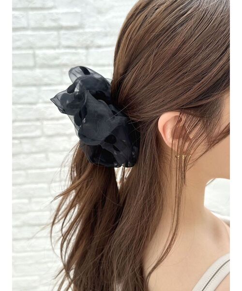 トレンド感満載のシアー素材のドットシュシュ。 存在感のある大きさで簡単なヘアアレンジにプラスするだけで一気に華やかになります。 白・黒の2色展開でシーズンレスに使えるアイテムです。