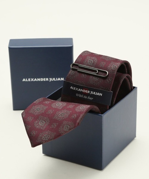 ■素材特徴 シルクの経糸とポリエステルの緯糸で織られた、光沢感のあるジャガード生地を使用しています。毛羽立ちやほつれにくい特徴があります。 ■デザイン ギフトケースに入ったネクタイ&タイバーセットです。バロック風の小紋柄ネクタイに、ユニークなモチーフタイバー(クリップモチーフ)がセットになった価値観あるアイテム。遊び心に溢れたデザインが衿元を華やかに彩ります。パッケージケースにもこだわったデザインなので、大切な方の誕生日や記念日のプレゼントとしてもおすすめです。 ■シルエット 大剣巾8cm×全長143cmで結びやすい、ベーシックなセミボトルスタイルです。 ■コーディネート タイドアップしながらも堅苦しくならず、スーツスタイルのお洒落なアクセントに。ビジネスシーンはもちろん、結婚式の二次回やパーティーなどのセミフォーマル、成人式や学校行事などのセレモニーシーンのドレスアップにも最適です。 展開カラー:ワイン・紺(ネイビー) *天然・合成素材にかかわらず多少の色落ちの心配がございますので、摩擦及び雨天のご使用や白系等の衣服を着用の際には充分ご注意下さい。 *金具類等のメッキの耐久性は種類により異なり年月とともに変化します。メッキが剥がれ腐食した後、衣服等に付着することもありますのでご注意下さい。 *アテンションタグ・洗濯ネームを御確認の上、着用又は取り扱い下さい。 *光の当たる場所や高温多湿になる場所での保管は避けて下さい。 *使用の有無に関わらず、経年劣化は進行いたしますのでご了承下さい。 *生地の裁断・縫製方法により、写真と同様の柄が出ない場合がございます。 *閲覧デバイス・環境により質感・色味に誤差が生じる場合がございます。 * ZOZOTOWN お買い物ガイド 商品のお気に入り登録 ♡をクリックしましょう!完売カラーの再入荷通知や、ラスト1点の通知、セールの通知をお知らせします。 ブランドのお気に入り登録 新商品や再入荷など、いち早くお得な情報を受け取ることができます。 最短で翌日お届け 商品をカートに入れた後、注文内容の確認ページで「即日配送」を選択していただければ、最短でご注文した翌日にお届け致します。 (ZOZOTOWNお買いものガイドをご参照ください) ビジネス 通勤 面接 就活 リクルート フォーマル 新生活 婚活 記念日 授業参観 参観日 敬老の日 父の日 入学式 入園式 卒業式 卒園式 セレモニー オケージョン プレゼント・ギフト 大人カジュアル ベーシック キレイめ オフィスカジュアル 定番 テレワーク 在宅ワーク 20代 30代 40代 アダルト シニア 等幅広いシーンやスタイルに活躍してくれます。