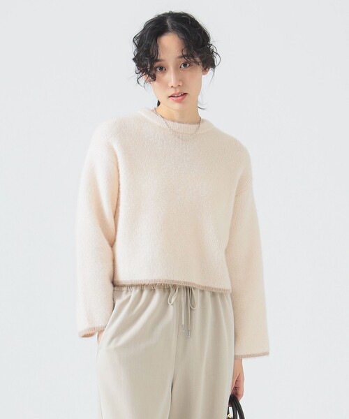 ふわもこあったかニット ■デザイン トレンド感あるボックスシルエットのニット。袖口と裾に施された配色ラインが程良いアクセントに。シャギー素材が見ためも温かく、シーズンムードをより一層盛り上げてくれます。自然に広がるフレアスリーブで、手元がすっきり華奢見えするのも嬉しいポイントです。 ■コーディネート 短丈デザインのため、ボリュームのあるボトムスともバランス良くキレイにまとまります。ワイドパンツやフレアスカートとの相性抜群です。 ■サイズ 身幅は広く全体的にゆとりのあるサイズ感ですが、短めの着丈ですっきりと見えます。 ■素材 ポリエステル100%のガラスヤーン糸を使用。ほんのりときらきら光る表面感が華やかです。柔らかく軽い着用感もも魅力。 ■ケア方法 手洗い可 (詳細は商品についている洗濯表示タグをご覧ください。) 【IVORY】Model:H165 B82 W60 H87 Size:ONE SIZE 【GREYISH_BLUE】BEAMS STAFF:H164 Size:ONE SIZE 生地の厚さ:やや厚手 透け感:なし 伸縮性:あり 光沢感:なし 裏地:なし ※屋外撮影による光の当たり具合やパソコンなどの閲覧環境によって、実際の色味と異なって見える場合がございます。予めご了承ください。 ※商品の色味は商品単体で撮影した画像をご参照ください。 ◆お気に入り登録のおすすめ◆ 気になる商品には「お気に入り」登録がおすすめです! 登録していただくと再入荷のお知らせやセール通知など、商品の最新情報が届きます。またマイページでいつでも確認が可能になります。 お得な情報が届くこともありますので、是非ご活用ください。