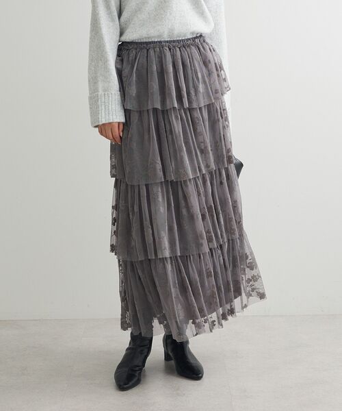 花がらフロッキープリントを施したチュール生地で仕立てたデザインスカート。女性らしい華やかな雰囲気のティアードデザインで、シンプルなアイテムと合わせるだけでコーディネートが完成します。ウエストは総ゴムで、ストレスフリーに着用できるのも嬉しいポイント。重くなりがちな秋冬スタイリングを軽やかに彩るおすすめのアイテムです。透け感[なし]生地の厚さ[普通]光沢感[なし]伸縮性[ややあり]裏地[あり]ポケット[なし]※モデル着用画像は、光の当たり具合で色味が違って見える場合がございます。※お使いのモニター環境によって商品の色味が違って見える場合がございます。●ELENCARE DUE●(エレンカーレ デュエ)ちょっとしたこだわり感と、自然体で『大人可愛い』を大切に、トレンドからベーシックまで時代のニーズに寄り添った商品を提案します。▼ 商品のお気に入り登録がおすすめです ▼商品ページ内のハートマークをクリック。完売時の再入荷や、最後の1点の通知、コーディネート画像がアップされたとき、お得なお値下げの際の通知を受ける事ができます。【お知らせ】ページでも通知が確認できます。