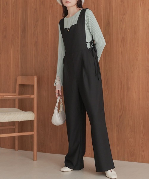 ●Bab● ■POINT デコルテ周りを華奢に魅せる大胆なスクエアネックが印象的なオールインワンが新登場です!ストンと落ち感の良いシルエットでクールな雰囲気の中にも、両サイドには紐リボンで可愛らしいアクセントを付けました。切替から下にタックを入れることで、脚長効果とウエストのすっきり見えを実現。広めの脇ぐりでレイヤードもしやすく、さらっとした質感でオールシーズン活躍してくれます。 ■FABRIC 季節を問わずお召し頂けるしなやかなポリエステル100%です。 ■COORDINATE これからの季節には暖かみのあるリブニットがオススメ!ハイネックと合わせてももたつかず、シュッとしたスクエアネックが洗練された雰囲気を作り出してくれます。シンプルなおつくりだからこそ ファーハットやシープライクベストなどの冬小物とも相性抜群♪風が冷たい日には厚地のニットをインして、暖かみのあるきれいめコーデをお楽しみ下さい。 ………………… 透け感:なし 裏地:なし ………………… ※撮影環境により、多少実際のカラーと異なる場合がございます。また、携帯やスマートフォン、パソコンなどの画面上と実物では多少色が異なって見える場合がございます。ご了承下さいませ。 ※画像の商品はサンプルのため、実際の商品と若干仕様が異なる場合がございます。 ※濃色品は、過度な摩擦や濡れた状態での摩擦により、色落ち・色移りをする恐れがあります。 ※この商品は、素材の特性上、洗濯の際に多少の縮みが生じる恐れがあります。洗濯後は形を整えてから干してください。 ※その他お取り扱いに関しましては、商品に付属のアテンションタグをご覧ください。 ★商品のお気に入り登録 再入荷やラスト1点のお知らせ、セール情報などお知らせを受け取ることができます! ★ブランドのお気に入り登録 新商品や再入荷などのお得な情報を受け取ることができますので、是非ご登録ください。 ★Bab公式Instagramアカウント【bab.showroom】で最新情報をチェック!