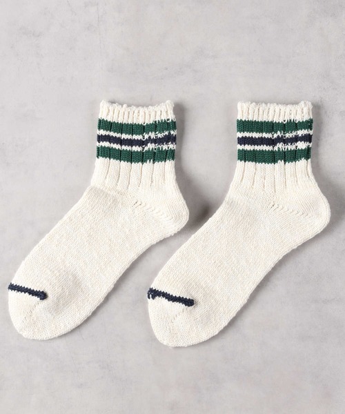 こちらはヴィンテージのスーパーローゲージマシンを駆使し、ムラ感のあるスラブ糸でざっくりと編み立てられたラインソックスです。コットンをメインに使った素材、レギュラーな厚さで季節を問わず、嫌な締め付け感もなく程よいフィット感で着用いただけます。ローカットスニーカーと合わせやすいクォーター丈と3本のライン。スラブ糸を使うことでくっきりとしたラインにはならず、ぼやけた様な粗い雰囲気に仕上がっているのもポイント。通常のスニーカーやサンダルとはもちろん、特にコンバースのオールスターやVANSのオーセンティックなど、昔ながらのローテクスニーカーとの相性は抜群かと思います。スラブ糸とは簡単に言えば「太さにムラのある糸」のこと。糸を紡績する際に撚りの強さを不規則にすることでランダムに出た”節”が特徴です。ざっくりとしたヴィンテージ感のある表情がカジュアルな雰囲気。凹凸になった節により、直接肌に接する面積が抑えられるので、肌離れがよくべたつきにくい点も魅力とされていて、夏場でも快適に着用いただけます。奥ゆかしい表情、しっかりとした編み立てでアノニマスイズムらしい一足に仕上がっています。【ANONYMOUSISM-アノニマスイズム-】世界中の名店に選ばれたMADEINJAPANソックス。MADEINJAPANでありながら、日本より先に海外で火がついたソックスブランド「アノニマスイズム」。欧米をはじめ、世界各国の一流ショップで展開されています。その理由は、ただクオリティが高いからだけではありません。記号性をあえて配し、”匿名主義”を貫くフィロソフィ、希少なヴィンテージ編み機と職人技の稀有なる融合、伝統を熟知するがゆえの自由なデザイン。世界基準の完成度で足元を彩る、ほかにない個性を宿したブランドです。ーーーーーーーーーーーーーーーーーーーーーーーーーーーーお得に&便利にお買い物を楽しむポイント♪▶商品のお気に入り登録(♥ハートマークをクリック)お気に入りアイテムの完売カラーの再入荷通知や、ラスト1点の通知、セールなどの情報をいち早くお届け。▶ショップ・ブランドのお気に入り登録新商品や再入荷、クーポン配布などお得な情報を随時お届け。ーーーーーーーーーーーーーーーーーーーーーーーーーーーー