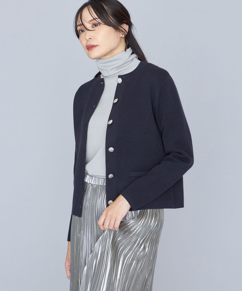 《シルバーのボタンが目を引くクルーネックカーディガン》 ボトムスとバランスが取りやすい、コンパクトなシルエットのクルーネックカーディガンです。 細やかな装飾が施されたシルバーのボタンがアクセントに。 フロントにあしらわれた、ポケット風のデザインにも注目です。 【デザインポイント】 ・ほど良い厚みのダブルジャガード編地のニットカーディガンです。 ・メタルボタンがポイントです。 ・ゆったりとしたシルエットとショート丈のバランスが今年らしいです。 【機能】 ・手洗い可能です。 ----------商品情報---------- 透け感:なし 伸縮性:あり 裏地:なし 光沢:なし ポケット:あり --------------------------- 【着用シーン】 ・結婚式、二次会(2次会)、披露宴、お呼ばれ、謝恩会、パーティー、食事会、同窓会、発表会、入学式、卒業式、通勤、仕事、デイリー、ショッピング、女子会 【スタイリング】 ・コンパクトなサイズ感のカーディガンはボタンを閉じてプルオーバーとしてもお使いいただけます。 ・インナーにブラウスやシャツを合わせてフォーマルに着こなしても、タートルネックニットなどを合わせてきれいに合わせても。 ・ジャケットの代わりとして通勤やお仕事シーンの軽羽織りとして今すぐ使えて、冬には防寒アイテムとしてウールコートやダウンジャケットの中に着こんでも。 ・短めな着丈はボトムを選ばず、きれいなテーパードパンツやフレアースカートと合わせても、ワイドデニムパンツとカジュアルに合わせても素敵です。 ・さっと羽織るだけでエレガントな雰囲気を演出できますので、ワンピースの羽織りとしてもおすすめです。 【カラーバリエーション】 ・オフホワイト(白)...フェミニンなオフホワイトはワンピースと合わせて年末年始の集まりを大人可愛く。 ・ネイビー(紺)...ジャケットの代わりとして使えるネイビーはインナーとボトムを選びません。 ・ブルー(青)...ボタンを閉じて1枚着としても使えるので、ブルーはコーデの主役になるカラーです。 【サイズバリエーション】 ・Mサイズ(9号相当) ・Lサイズ(11号相当) モデルは身長169cmでMサイズを着用しています。 【ブランド紹介】 《A/C DESIGN BY ALPHA CUBIC(エーシーデザインバイアルファキュービック)》は通勤時やオフィスで、学校行事や“おうちの用事”などのオケージョンで、女性が気張らずに心地良くいるための服を提案するブランドです。 【お買い物をお得にもっと楽しんで頂くために】 ▼商品のお気に入り登録▼ 完売カラーの再入荷通知や、ラスト1点の通知、プライスダウンしたセール通知も受け取ることができます。 ▼ブランドのお気に入り登録▼ 新作や再入荷等、いち早くブランドのお得な情報を受け取ることができます!