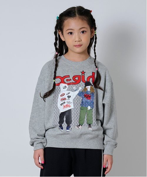 裏起毛素材を使用した、ガールイラストシリーズのトレーナーです。 クールな2人組のイラストを大きくプリントし、これ一着で主役級のインパクトを与えます。 綿100%でやわらかい肌当たりのため、小さなお子さまでも安心です。 内側にお名前を記入できるタグがついています。 【透け感】透けない 【生地の厚さ】厚い 【伸縮性】あり 【裏地】なし 【ポケット】なし