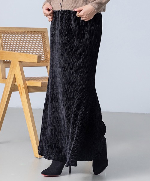 ■プリーツが織りなす光沢感で思わず歩きたくなる。 レディース ロング スカート シーズンムード高まる秋冬っぽベロアスカート Velor Pleated Long Skirt ■SIZE:FREE ◆アイテムのお気に入り登録◆ ハートマークをクリックしてお気に入り登録しておくと、 本アイテムが“あなただけのタイムセール”候補になります! 他にも本アイテムのプライスダウン情報・再入荷・ラスト1点など いち早くお得な通知を受け取ることができます! ■着映えする華やかな秋冬コーデに!ベロアプリーツスカート ランダムプリーツがこなれた印象を演出し、動くたびに光沢感が高見えするベロア素材のスカート。 マーメイドラインのシルエットが様々なトップスとのバランスが取りやすく、 綺麗め~カジュアルな雰囲気まで幅広いコーデがしやすい万能スカートです。 【Fabric】 表地:光沢感あるベロア生地 裏地:さらっとした生地のダブルフェイス デザイン性も機能性も充実 Detail Point Detail 1 楽な穿き心地のウエストゴム リラックスして穿ける◎ ウエストゴムデザイン。 Detail 2 裾にかけて広がるマーメイドシルエット 気になる下半身をカバーしつつ脚を長く見せ、スタイルアップ叶う。 ■MODEL 160cm/42kg B:72/W:59/H:82 着用サイズ : FREE 【商品仕様】 ・生地の厚さ:中厚手 ・透け感:なし ・ストレッチ:なし ・裏地:なし 【セット内容】 ・1点 ・スカート ●モデル着用アイテム● ブラック、ネイビー 商品コード:55279982(ニットカーディガン) ダークブラウン、ベージュ 商品コード:89267302(チェックシャツ) ◆ブランドのお気に入り追加◆ セールやクーポン配布情報/新作アイテムの入荷/ショップニュースなど ブランドの最新情報を受け取ることができます。 Instagram > @day_closet1203 tiktok > @daycloset.official ●サイズ表をご確認の上、お間違いのないようご購入下さい。 ※サイズは平置きで測定しております。 サイズは、実寸サイズを測っているため多少誤差がでる場合があります。 製造工程の関係上、各採寸箇所実寸(平置き)より【約-3cm~+3cm】程度は 誤差の許容範囲とさせて頂いておりますので、予めご了承くださいませ。 ●商品・着用者によっては多少の誤差がある場合がございます。 ●生地の取り方により、柄の位置等写真と異なる場合がございます。 ご了承ください。