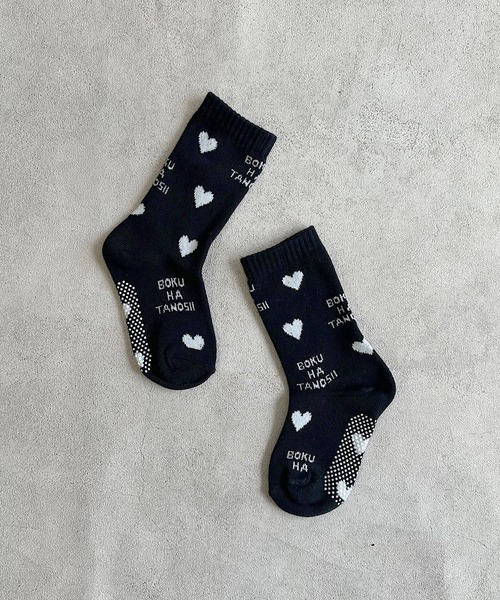 【別注アイテム】[BOKU HA TANOSII]ハート柄ソックスが登場!!■デザインハート柄が散りばめられたソックス。"BOKU HA TANOSII"のロゴも◎おしゃれは足もとから☆普段のコーデに加えるだけで、トレンド感がプラスされるアイテム。安心の日本製で、プレゼントやギフトにもオススメです。※ 足裏にラバーの滑り止めがついています。――― BOKU HA TANOSII ―――私たちの活動理念 それが『BOKU HA TANOSII』です。『BOKU HA TANOSII』は 文字を読まれたり それをきっかけに会話が始まり男性や女性 大人や子供さらには国境や言葉の壁をも超えたコミュニケーションツールとなります『BOKU HA TANOSHII』を身に着けることでまず自分自身が楽しくなり その気持ちが周りにも広がる"TANOSHIIのサイクル"が生まれることを願いデザインされました"TANOSII"気持ちは万国共通※お使いのモニター環境によっても実物のお色味と異なって見える場合がございます。予めご理解の程よろしくお願いいたします。ハートマークをポチッ!気になる商品はお気に入り登録をお忘れなく!商品のお気に入り登録をすると...[再入荷][残り1点][セール情報]を受け取れます。MARKEY'Sをお気に入り登録すると...[新商品][再入荷]の情報をいち早く受け取れます。――― 別注アイテム ―――流行を先取りし、有名ブランドに特別に注文することで、他にはないマーキーズらしいアイテムを提案。他店でも取り扱いのあるブランドで、このカラー・この形は見たことない!という発見がきっと見つかります。