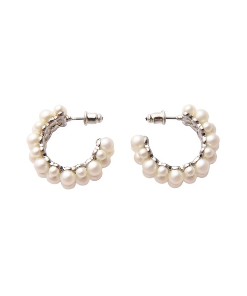 大きさの異なるパールが顔周りに華やぎを放つフープピアス たっぷりのパールが耳元を彩るピアス。 ワイドな幅で存在感もありシンプルなスタイリングのアクセントにも。 たくさん散りばめられたパールが華やかさを演出します。 パーティーやホリデーシーズンにもおすすめ。