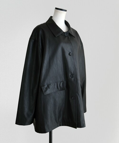 ◆アイテム詳細◆ 抜け感のあるビッグシルエットでハードになり過ぎずレディライクなエコレザーJK。 季節の狭間のアウターは風を通しにくエコレザー素材で、秋から冬にかけても、また春先の肌寒い日にも大活躍のアイテムです。 オーバーシルエットなので、ロンTやシャツ、肉厚のニットなども着込むことができます。 ──────────────────────────── 【COLOR】ブラック 【SIZE】Fサイズ 平置き(㎝) 総丈80 着丈70 身幅60 裄丈83 裾幅62 袖口15 【素材】本体 合成皮革 裏地 ポリエステル 100%