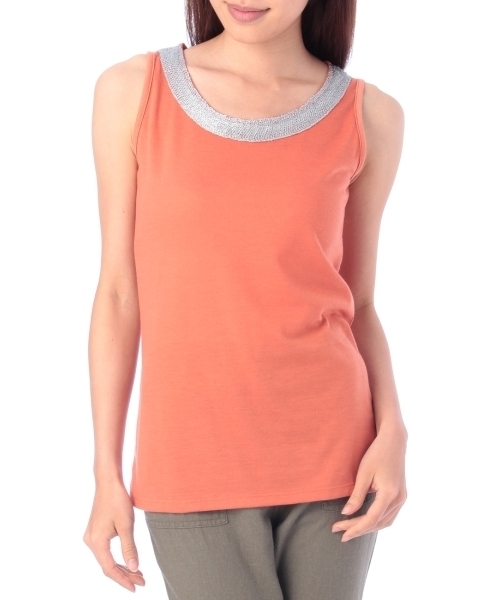 チェーンのように編み上げたアビガイル糸を太く衿にあしらったタンクトップ。インナー使いのアクセントとして活躍するアイテムです。モデル情報:身長168cm B80W57H84 着用サイズ:02(M)店舗へのお問い合わせ商品番号:511-16356主に夏に着用いただける商品です。サイズスペック●製品寸法:01(S):総丈61 B78 肩幅3102(M):総丈63 B82 肩幅3203(L):総丈64 B85 肩幅33