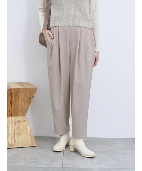 丸みを帯びたカーブシルエットが女性らしい柔らかな雰囲気を演出するパンツ。ウエストベルトのディテールも、スタイリングにメリハリ感をプラス。トップスをタックインすることで、脚を長く見せてくれる嬉しい効果も期待することができます。普段使いにはもちろんお仕事やデートなどの様々なシーンにも活躍してくれる1枚です。※商品画像は、撮影環境やお客様のご利用のPC・スマートフォンのモニター環境などにより実物と色味に差異がある場合がございます。【その他採寸】F ウエスト:[後ゴム仕様]66cm