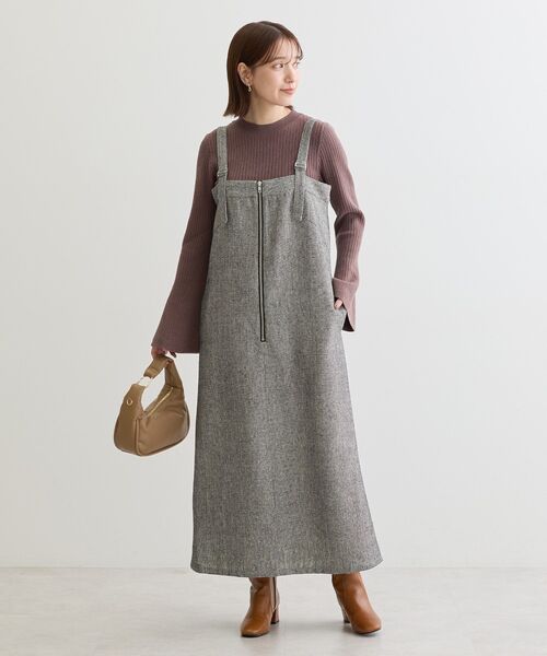 トラディショナルな雰囲気もあるツイード生地で仕立てたジャンパースカート。ジップアップのメタルと配色テープを効かせたシンプルなデザインで、普段遣いにも最適な一着です。 ストラップベルトは自由に調節が可能で丈感アレンジも可能。 インナー次第で印象を変え、様々なシーンで合わせて頂ける汎用性の高いアイテムです。 透け感[なし] 生地の厚さ[普通] 光沢感[なし] 裏地[あり] ポケット[あり] ※モデル着用画像は、光の当たり具合で色味が違って見える場合がございます。 ※お使いのモニター環境によって商品の色味が違って見える場合がございます。 ●ELENCARE DUE● (エレンカーレ デュエ) ちょっとしたこだわり感と、自然体で『大人可愛い』を大切に、トレンドからベーシックまで時代のニーズに寄り添った商品を提案します。 ▼ 商品のお気に入り登録がおすすめです ▼ 商品ページ内のハートマークをクリック。完売時の再入荷や、最後の1点の通知、コーディネート画像がアップされたとき、お得なお値下げの際の通知を受ける事ができます。 【お知らせ】ページでも通知が確認できます。