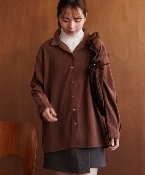 ■デザインウィンターシーズンにぴったりなこっくりカラーシャツ♡ハートのボタンが大人可愛いアクセントに◎ゆったりとしたシルエットと長めの丈感で、ウエストやヒップ周りをカバーしてくれます!秋冬のレイヤードアイテムとして活躍する一枚です。カジュアル過ぎない控えめなサイズ感の襟がポイント♪第一ボタンは付けず、スキッパーシャツのようにラフに着ていただけます。ニットを上から重ねたり、中にタートルネックを着こんだりとスタイリングの幅もぐっと広がるアイテムです♡デイリー使いや秋冬のイベントにぴったり!ミニ丈ボトムスとの合わせがおすすめです。■flower/フラワー「love&joy」をコンセプトに、商品に愛を込め、お客様に楽しんでいただけるような、ナチュラルでガーリーなアイテムを提案していきます。【お買い物を上手にお楽しみいただくためのPOINT2つ】◎ 購入ボタン横の ♡ (ハートマーク)をクリック! 完売カラーの再入荷通知、残り1点の通知、セールの通知を受け取れます。 (クリックまたはタップで商品のお気に入り登録♪)◎ ショップのトップページにある ♡ (ハートマーク)「お気に入りショップに追加」をクリック! 新商品や再入荷等、いち早くブランドのお得な情報を受け取れます。 (ブランドのお気に入り登録♪)