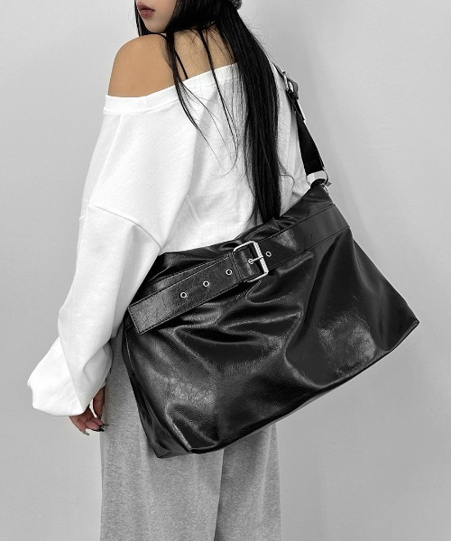 ベルトデザインビッグショルダーバッグインパクトのあるサイズ感が魅力のバッグ。デイリー使いはもちろん、通勤通学シーンや旅行用バッグとしても活躍してくれます。長さが調節可能なショルダーは幅が広く、長時間肩掛けをしていても疲れにくいうれしいポイントも◎光沢のある合皮素材は、モードテイストにはもちろんストリートコーデまで様々な系統にマッチします。▼LVEU./ラブユシンプル×モノトーンをベースにモードなデザイン性をプラス。トレンドを意識したモノトーンの世界観を発信するモードカジュアルブランド。▼▼商品のお気に入り登録をお願いします▼▼♡をクリックして下さい。お気に入り登録をしていただきますと、再入荷通知や、ラスト1点の通知、セールの際の通知も受け取ることができます。▼▼ブランドのお気に入り登録をお願いします▼▼新商品や再入荷等、いち早くブランドのお得な情報を受け取ることができます。【ATTENTION】 ※フェイクレザー(合皮)商品には、染料等特有のにおいがある場合がございます。気になられる場合は、お手数ではございますが、風通しがよく直射日光の当たらない場所にてしばらく平置きで陰干しをお願い致します。※フェイクレザー(合皮)商品は経年劣化による表面加工の剥がれやひび割れが起こる恐れがあります。※着用環境や条件により稀に色移りすることがございますので淡色のものをご着用の際はご注意ください。※商品画像につきましては、なるべく実物に近づけて撮影いたしておりますが、閲覧頂いておりますモニターによって、画像と実際の商品のお色に多少の差異が生じる場合が御座います。予めご了承下さい。※商品画像はサンプルの為、実際の製品とは仕様やデザインが多少異なる場合がございます。予めご了承下さい。※サイズにつきましては、すべて平台に平置きにし測定しております。商品によっては実際の製品上がりサイズと1~3㎝程、多少誤差が生じる場合がございます。予めご了承ください。