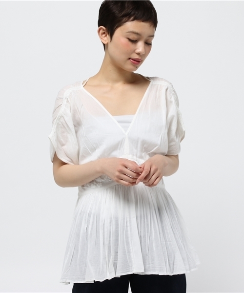 一点一点手作業による刺繍が施されたトップスはぬくもりを感じる物に仕上がっています。 綿ローン素材もサラリとした肌触りが心地よく優しいガーリーなイメージに仕上げてくれます。 メンズライクなボトムスと合わせたスタイリングもオススメ。足元にはサンダルで夏のコーディネートを! 品番 1011151030
