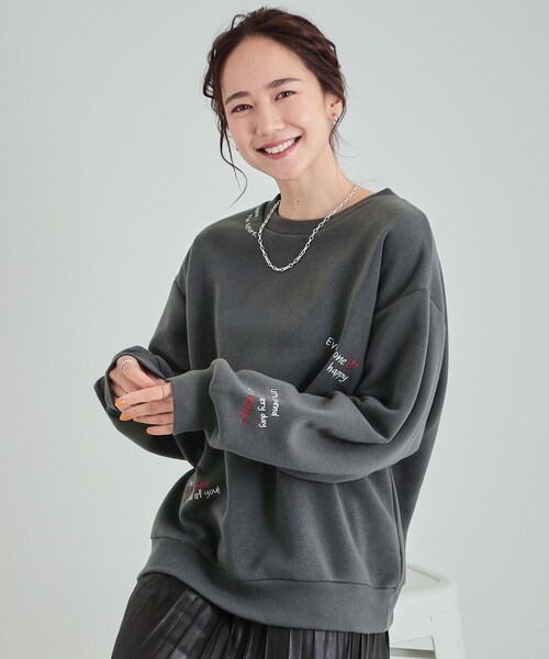 【SHOO WARM】・・・シューラルーの暖か素材シリーズです。 【デザイン】 様々なバリエーションの刺繍を施した、裏起毛スウェット。 〈ハート刺繍・・・211カラー〉オートミールのカラーに小さなハート刺繍を施しています。 さりげないハートの刺繍が一枚で着るだけでこなれ見えしてくれます。 〈バックロゴサガラ刺繍・・・112カラー〉 定番バックロゴをサガラ刺繍で立体感のある仕様に。後ろ姿が着映えるカラーです。 〈手書き風ロゴ刺繍・・・314カラー〉 トレンドの手書き風ロゴの刺繍をふんだんに施しました。 落ち着いたチャコールグレーで大人な印象で着ていただけます。 【スタイリング】 着丈が長すぎないスウェットなので、デニム合わせはもちろん プリーツスカートやナロースカートで程よく大人なきれいめカジュアルな着こなしもおすすめです。 カラーによって刺繍デザインも違うので、同じボトムを合わせてもまた雰囲気が違った印象で着こなしを楽しんでいただけます。 【お客様からいただいたコメント】 ・一目惚れです。 ロゴとハートマークが可愛いので気に入りました。 裏起毛なので肌触りよく暖かいので、買って良かったです。 (身長:158cm 体型:ふっくら チャコールグレーのMサイズ購入) とのお声を頂戴しております。 【素材】 やわらかなスウェット素材を使用。 裏面はあたたかな起毛素材です。 #CutieBlonde#Cutie#cutieblonde#cutie#キューティブロンド#キューティ モデル情報:身長163cm B81 W59 H88 着用サイズ:02(M) 店舗へのお問い合わせ商品番号:256-19055 ●製品寸法: 01(S):着丈62cm B102cm 袖丈52cm 肩幅50cm 02(M):着丈64cm B104cm 袖丈53cm 肩幅51cm 03(L):着丈66cm B107cm 袖丈54cm 肩幅52cm 04(LL):着丈68cm B110cm 袖丈56cm 肩幅53cm 備考:
