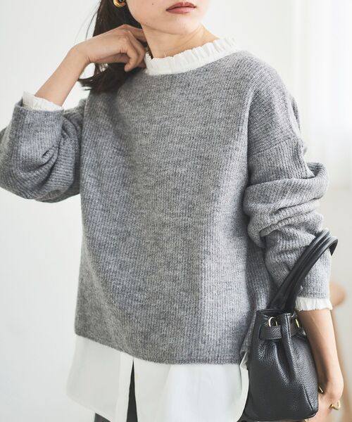 さりげなくキラッと輝くラメが華やかな畦編みニット。 ショート丈と程よいゆとりのあるサイズ感がコーディネートに抜け感をプラスしてくれます。 ●ポイント アウターの中に着やすい肉感で柔らかく軽い着心地のニット。 ボクシーなシルエットで身体のラインをひろわないのも嬉しいポイント。 ●おすすめコーデ 表面に表情がでる畦編みは程よくカジュアルさもあり、きれいめにも、カジュアルにも着まわして頂けます。 インナーにカットソーやシャツを合わせたレイヤードコーデもおすすめです。 ラメが入っていますが、チクチクしにくくなっています。