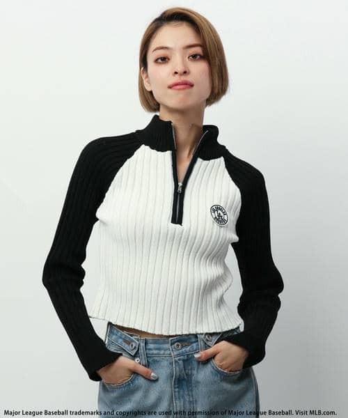 ■2024AW NEW ITEM■ ラグランスリーブがスポーティな ショート丈ハーフジップニットトップス 【素材】 軽くて立体感の出るニット素材 しっかりとした肉感があり、身体のラインを拾い過ぎないのも嬉しいポイント◎ 【デザイン・シルエット】 ショート丈のニットはウエスト位置が高く見え脚長効果抜群◎ トレンドのハーフジップデザインでネックの開け方で見え方を変えられます。 配色のラグラン袖がスポーティでありながら、綺麗にシルエットのですリブ編みでどこか女性らしいシルエット。 チーム別のサークルロゴワッペンがポイントに。 【コーディネート】 ショート丈なのでハイウエストボトムとの相性が◎ トレンドのワークパンツや、デニムバギー、スウェットパンツなどとあわせて海外スナップのようなストリートコーデがおすすめ。 ジップを開けてインナーにTシャツをレイヤードしたコーデも、ジップをしめてハイネックトップスとして着用しても可愛いです◎ ホワイト:ロサンゼルス・ドジャース グレー:ニューヨーク・ヤンキース ベージュ:サンディエゴ・パドレス 【BACK TO THE FIELD】 様々なカルチャーを独自のFIELD(ステージ・舞台)でPLAY(楽しむ)する。 をコンセプトに、ストリートシーンへ新たなスポーツファッションを”ハイブリッドなスタイル”で提案。 それぞれのスポーツのルーツやカルチャーを大切にし、 「独自性と遊び心をMix」した「価値のあるストリートコミュニティー」を作り発信し続けていく!