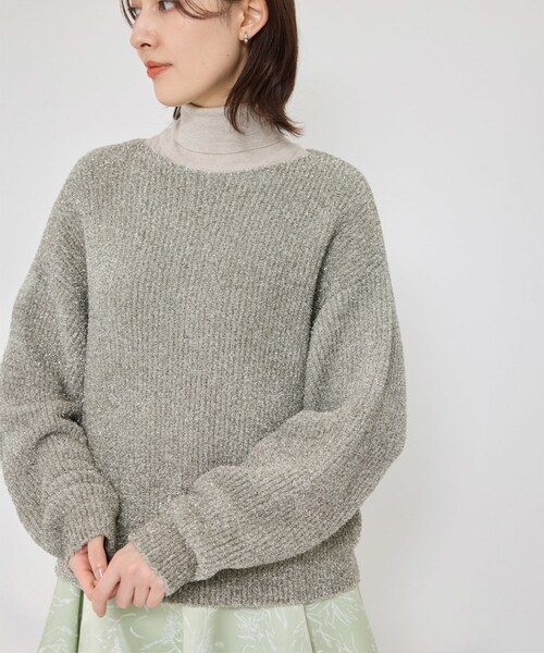 【素材】 キラキラと光るフィルムのフリンジ感がかわいいインポートヤーンを使用しています。片畦にすることで少し肉感を出しています。こちらは糸の特性上、ラメ糸が抜けやすいのでご注意ください。着用前に粘着シートなどで全体を軽めにケアしていただくと抜けを軽減できるかと思います。 【デザイン・シルエット】 メタリックなカラーが印象的な編み地を主役にシンプルなボートネックプルオーバーをおつくりしました。ゆるっとリラックス感のあるシルエットで、抜け感のある見え方がポイントです。 【カラー】 シャイニーなシャンパンゴールド系とシックなブラックの2カラー展開 【おすすめのスタイリング】 サラッと1枚で着用するだけでとても印象的なプルオーバー。シアーインナーやシャツとのレイヤードでデイリーなカジュアル感をプラスしても素敵です。キレイめボトムとのコーディネートで華やかな場所へのお出かけにもぴったりな1枚です。 ---------------------------- 透け感:なし 裏地:なし 伸縮性:ややあり 光沢感:あり 生地の厚さ:中肉 ポケット:なし 開き方:かぶり ---------------------------- 【モデル情報】 モデル身長:170cm 着用サイズ:F ※画像の商品はサンプルです。実際の商品と仕様、加工、サイズが異なる場合がございます。 ※撮影場所やライティング、お使いのモニター環境によって色の見え方が異なる場合がございます。 ※商品のカラーは画像の色味をご参照ください。動画は仕様説明のため、色味が実物と異なる場合がございます。