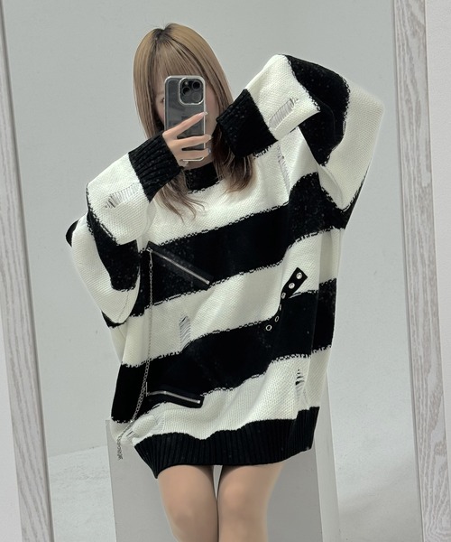-SILVER BULLETバイヤーがオススメするセレクトアイテム- ダメージボーダークルーニット ■DESIGN/FABRIC 【セレクトアイテムに新作の仲間入り】 境目をジグザグにしたボーダーに所々クラッシュ加工を施したクラッシュボーダーニット。 ZIPやハトメデザインも取り入れた、カジュアルストリートな一品。 ビッグシルエットで地雷系ファッションからストリートファッションまで 幅広く活躍してくれるのでオススメです。 ※モデル画像は照明などの影響により実際の商品と異なる場合がございます。 【ZOZOTOWNでお買い物を上手にお楽しみいただく2つのPOINT】 ▼購入ボタン横の(ハートマーク)をクリック! 完売カラーの再入荷通知や、ラスト1点の通知、セールの通知も受け取ることができます。 (クリックで商品のお気に入り登録) ▼ショップのトップページにある(ハートマーク)「お気に入りショップに追加」をクリック! 新商品や再入荷等、いち早くブランドのお得な情報を受け取ることができます。 (ブランドのお気に入り登録) ※他のキャンペーンにより、期間中に価格が変動する場合があります。 ※セールは予告なく終了させていただく場合もあります。 サブカル系 Y2K 中華風 中国風ファッション Z世代 ストリートカジュアル ビジュアル系 V系 モード系 地雷系 闇系 ヤミ系 闇かわいい 病みカワイイ インヤン 陰陽 太極拳