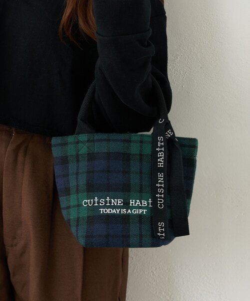 人気のハビッツトートに秋冬らしいチェック柄が仲間入り! シンプル&ナチュラルで大人気のCUISINE HABITS(クイジーヌハビッツ)のトートバッグに冬の新作が登場!こちらはHORIZONTALトートのミニサイズになります。秋冬の定番である、タータンチェック素材でつくったトートは、長財布やタオル、ペットボトルも入るちょうどよいサイズ感。秋冬らしい微起毛素材で見た目も温かみのあるバッグです。内ポケットもついており、使いやすさも抜群。同じ素材で定番のHORIZONTALトートもご用意しております。別ページも併せてご覧ください。