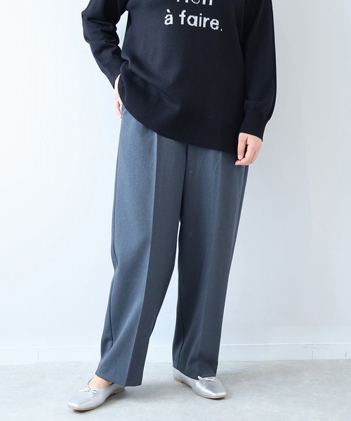 キレイめからカジュアルにまで使えるワイドパンツ 【デザイン】 ワイドな幅感で裾に向かって少し細くなっていく太テーパードシルエットのパンツです。 ウエストのフロント部分は前開きの見せかけのゴム仕様なので、ストレスフリーでありながらきちんと感のある印象に。 センタープレスでキレイ見えと足長効果でスタイルアップの叶う1枚に仕上げました。 後ろのポケットも見せかけではなく本物のポケットになっていて前後4個付いています。 ゆったりとした履き心地で長時間履いても疲れないハンサムな雰囲気のワイドパンツです。 【素材】 落ち感が有り、しっかりとした丈夫なカルゼストレッチの生地を使用。 上品で柔らかな生地で、斜めに畝の織模様のある素材です。 ーーーーーーーーーーーーーーーーー 透け感:無し 伸縮性:若干有り 裏地:無し ーーーーーーーーーーーーーーーーー 【色展開】 優しいベーシックカラー2色 ・グレー(灰色 ネズミ色 スチールグレー) ・コン(ネイビー 紺色 紺青) 【スタイリング】 ハンサムな雰囲気のパンツなのでキレイめのニットとのコーディネートがおススメです。 ジャストサイズのトップスと合わせて頂くとコンパクトなシルエットになりスタイルアップ効果も! ユルっとしたトップスとのコーディネートはリラクシーな印象になり、ほっこりしたシーズンライクな着こなしになります。 また、ロゴTなどのカジュアルなアイテムとの相性も◎ 【ブランド説明】 -leswel レスウェル― より健やかな心で日々過ごしたい。 エフォートレス、シームレス、シーンレス、ボーダーレス、タイムレス。 様々なlessをまとうことで、心身ともに長く、心地よくがコンセプト。 外で過ごす時、ストレス無く女性らしいファッションを楽しみアクティブに過ごす時には可愛らしさを気持ちにまとって何か始めたい。 どんな場面でも自分らしく在ることのできるhealthy wearを。 L、LL、3L、4L、5L、豊富なサイズ展開のブランドです。 ゆったり着たい、ぽっちゃりさん、プラスサイズ、グラマーさん、ラファーファモデル体型の方にもお勧めのボディポジティブになれるお洋服です。 《お気に入り登録》でお得な情報がいっぱい ・「商品のお気に入り登録」で再入荷通知や、人気アイテムのラスト1点通知、セール通知等お得な情報を受け取ることができます。 ・「ブランドのお気に入り登録」でSHOPの新作アイテムや再入荷など、お得な情報を受け取ることができます!