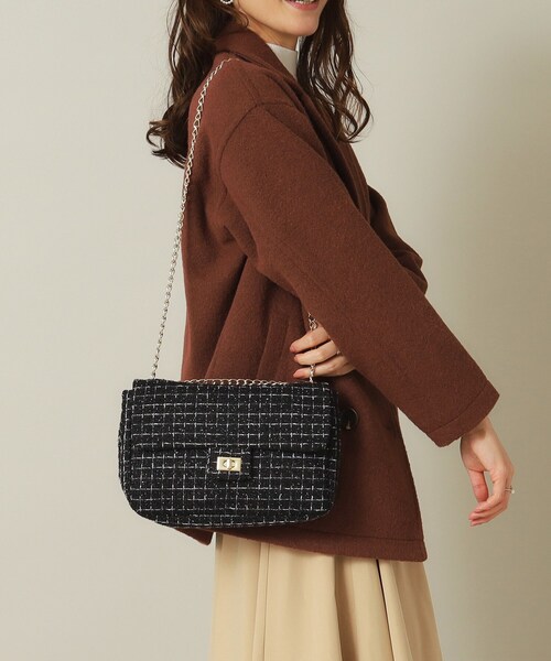 【デザイン】 クリスマスシーズンにピッタリなラメツイードミニショルダー。 ラメ糸を織り込んだツイード生地を使用しているので、持つだけでパッと華やかな印象にしてくれます◎ ひねり金具のフロントホックで開閉もラクチン♪デニムなどのカジュアルコーデにあえてアクセントとして合わせても◎ ギフトアイテムとしてもおすすめです。 ※ポケット数×2 ※照明の関係により、実際よりも色味が違って見える場合があります。また、パソコン・スマートフォンなどの環境により、若干製品と画像のカラーが異なる場合もございます。 店舗へのお問い合わせ商品番号:P93-79098 ●製品寸法: 00(フリーサイズ):高さ16cm 幅(上部)25cm 幅(下部)25cm マチ6cm ショルダー対応サイズ52~91cm 備考:重量:約270g
