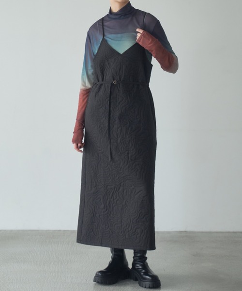 quilting cami dress/キルティングキャミワンピース 個性的なキルティング模様があしらわれた 秋冬にぴったりのキャミワンピースが登場。 フロントにベルトが付いているデザインで ウエストマークでスタイルアップ効果のあるデザインに仕上げました。 背中にはシャーリングゴムも入っているので伸縮性も◎ サイドスリットも入っているので動きやすいデザインになっております。 インナーにはシアーのトップスや、シャツ・ブラウスが相性抜群。 ワンピースなので上からニットなどを重ねてもスカートしてご着用頂けます。 ------------------------ 透け感/なし 光沢感/なし 伸縮性/なし 裏 地/なし 厚 み/普通 ------------------------ <brand concept> トレンドやライフスタイルに都会的エッセンスを加え、 ディティールにこだわり抜いたモードカジュアルスタイルを提案。 ▼商品のお気に入り登録 完売カラーの再入荷通知や、ラスト1点、セールの通知をお知らせ致します。 ▼ブランドお気に入り登録 新商品や再入荷など、いち早くブランドの情報を受け取ることができます。