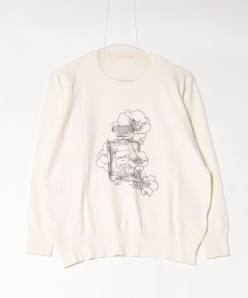 【DESERT ROSE/デザートローズ】自分のファッションスタイル、ライフスタイルを持ち、トレンドを取り入れながら自由におしゃれを楽しむ都会的な女性。人生を豊かに過ごす、なにげ無い日々の生活を楽しむ、綺麗でいることをあきらめない、そんなキラキラ輝いた大人の女性のライフスタイルを提案。*+*+*+*+*+*+*+*+*+*+*+*+*+*+*+カットソー感覚でロングシーズン楽しめるプルオーバーニット。POPなプリントにビジューを重ね立体的に仕上げた大人の遊び心と程よい華やかさもキープした1着。夏のプリントTシャツやロゴTシャツのように毎日のコーディネイトに足すだけでおしゃれなインパクトをプラスしながら毎日のスタイリングで気軽にニットを楽しみたいそんな気分にぴったりなニットアイテム。春先や秋の1枚着としてはもちろん、ジャケットやアウターのインナーに合わせても嵩張らず着られるサイジング。ロンTではカジュアル過ぎるのでニットのキレイめ感をひと匙プラスしたような塩梅が大人のデイリースタイルにちょうど良いアイテムです。フレグランスボトルを飾る花にビジューをあしらいさりげない華やかさをプラス。カジュアルコーデはもちろん、フェミニンなふんわりシルエットのスカートやスーツのインナー合わせなどシーンレスでコーディネイトしていただけます。【詳細情報】厚み:□薄手 ■普通 □厚手透け感: ■なし □あり光沢感: ■なし □あり伸縮性: □なし ■あり裏地: ■なし □ありポケット:■なし □あり*+*+*+*+*+*+*+*+*+*+*+*+*+*+*+★商品のお気に入り登録をおススメ致します★サイズやカラー横のハートマークをクリック!完売カラーの再入荷や、ラスト1点の通知、セールの際の通知を受ける事ができます。