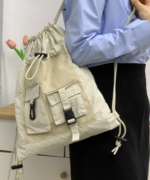 -おすすめポイント♪- A4サイズ収容可能で大容量! カジュアルに使えるデイリーユースにピッタリなナップサック♪ 無地のデザインで、どんなコーデともマッチするアイテムです◎ A4サイズがすっぽり入る大容量に加え フロントにはポイントの大きなメッシュポケット×1・蓋つきの小さめポケット×2 と収納力も抜群◎ ポーチいらずで小物収納も簡単♪ 肩紐はドローコード付きで長さ調節可能! メンズでも使える、トレンド感と使い勝手を兼ね備えたバッグです! 普段使いにももちろん、フェスや旅行のサブバッグとしても大活躍! -お買い物をお楽しみいただくために- ◆この商品が気になったらお気に入り登録 完売カラーの再入荷通知やセール情報、ラス1情報などの通知を受け取ることができます♪ ◆LAC VERTをお気に入りブランドに登録 新商品や入荷情報を受け取ることができるので、いち早く新作をチェックできます!是非ご登録してくださいね♪ ※撮影時のライティング、ご覧になっているモニター・PC環境により、実際の商品と色味が異なって見える場合がございます。予めご了承をお願い致します。 韓国/韓国ファッション/韓国風/韓国アクセサリー/ガーリー/フレンチガーリー/コケット/コケットコア/バレエコア/フェミニン/ストリート/量産型/通勤/通学/秋服/冬服