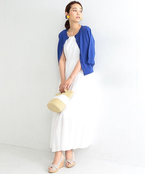 ボイル生地を使用したノースリーブのマキシワンピースです。夏にふさわしい通気性のあるさらっとした着心地が魅力。ローカットスニーカーを合わせたカジュアルスタイルもおすすめです。カゴバッグやストローハットなど夏らしい小物をプラスすれば、リゾート気分を盛り上げてくれるひと品。店舗へお問い合わせの際は下記品番をお伝えください。 品番:52-26-0654-012