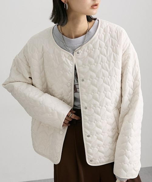 さりげないハート柄がポイント ハートキルトジャケット ■デザイン ・キルトがすべてハートになった、甘可愛いジャケット♪ ・中わた入で軽くてあったかいアウターです! ・着丈も短すぎず、長すぎず、ちょうど良いバランス♪ ■素材 表面はタフタ素材を使用した中わた入ジャケット ■おすすめのスタイリング ハート柄で、気持ち甘めなデザインなので、ボトム等でかっこよくコーデするのがおすすめ! もちろん、ボリューム感のあるフレアスカート等とのコーデでもバランスも取れやすく、可愛いですよ! クルーネックでお顔周りはすっきり見せなのでボリューム感のあるニット等の上に羽織っても◎ 【Be praised】ーーー明日ちょっと褒められる服ーーー 大人トレンドを意識したこだわりのアイテムと着こなしでアナタの毎日に輝きを。 ただシンプルできれいなだけじゃ物足りない。 カジュアルすぎず、スタイリッシュで大人の品性を感じる着こなしに。 そんな、こなれたオシャレを楽しむ女性に寄り添う、 新鮮なリアルクローズをご提案します。 <仕様> [表地]ポリエステル100% [裏地]ポリエステル100% [中わた]ポリエステル100% 前開きボタン ※照明の関係により、実際よりも色味が違って見える場合があります。 またパソコン・スマートフォンなどの環境により、若干製品と画像のカラーが異なる場合もございます。 あらかじめご了承のうえ、ご注文ください。 透け感:なし 生地の厚み:普通 裏地:総裏 ポケット:両脇 季節:秋・冬 シルエット:ゆったり <洗濯方法> クリーニング ■キーワード 20代、30代、40代、きれいめカジュアル、きれかじ、オフィスカジュアル、キレカジ、冬、大人、大人カジュアル、通勤カジュアル、あったか、アウター、軽アウター、羽織り、ジャケット、ブルゾン、ハートキルト、ハート、ニッセン、にっせん、nissen、キルトジャケット、軽羽織、ロングシーズン、ノーカラー、
