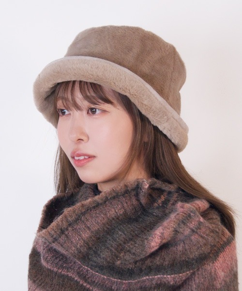 つばをおろしてバケットハットしてもかぶれる2WAYハット肌触りのいい柔らかいファーなのでかぶり心地抜群。 フィット感もあって長時間かぶれます。 暖かいので防寒対策にも。 ベーシックなカラーなので普段の服や、 個性的なコーディネートに合わせてかぶってもかわいい◎ 旅行やアウトドア、タウンユースにも使えて幅広いシーンに合わせてかぶれます。