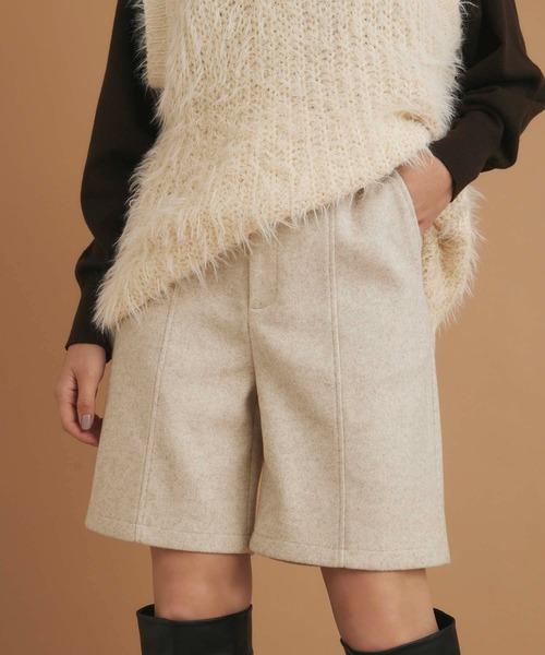 センターシームがレッグラインをきれいに魅せるショートパンツあたたかみのあるフェイクウール素材を使用したショート丈パンツ。フロントに施したセンターシームが、レッグラインをすっきりときれいに魅せてくれます。シンプルなデザインで合わせるトップスを選ばず、幅広いスタイリングに活躍するアイテムです。------------------透け感:ややあり生地の厚さ:普通裏地:なし伸縮性:ややあり------------------#低身長 #低身長向け▼ATTENTION▼※摩擦や汗、雨等で濡れた場合、他の衣料に色移りする場合がございますのでご注意下さい。※撮影時のライティング、PCやスマートフォンの環境により写真の色味が実際の商品と異なって見える場合がございます。ご了承の上お買い求め下さいませ。※モデル着用画像は実際の色と多少異なる場合がございますのでマネキン画像をご確認ください。※製造過程や素材により染料等の臭いが強い場合がございます。臭いが気になる場合は一度陰干しされてからご使用下さい。※着用衣装はすべて参考商品です。――――――――――《お買い物をもっと楽しむために!》■商品のお気に入り登録お気に入りの商品やカラーを登録していただくと値下げ・在庫1点・完売後の再入荷などの通知を随時受け取ることができます。■ブランドのお気に入り登録新商品の発売や再入荷、セール、クーポン配布などEditSheenのお得な情報を受け取ることができます。