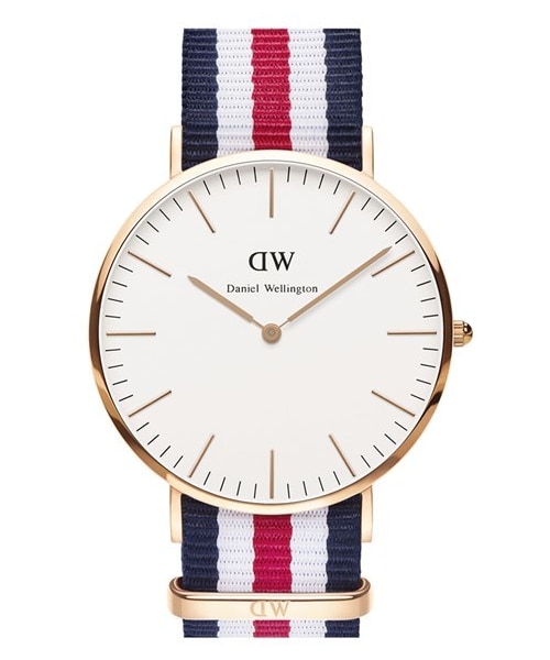 Inspired by muse Daniel Wellington, this classic round watch shows off a timeless case designed to be thin and elegant. Paired with an iconic NATO strap, the preppy timepiece easily transitions from country club to tennis courts to formal events. With optimal versatility in mind, the interchangeable strap design allows you to swap out the striped NATO strap for any 20mm Daniel Wellington band. 40mm case; 20mm band width. Buckle closure. Two-hand quartz movement. Mineral crystal face. Stainless steel or stainless steel with rose-goldtone plating/textile. By Daniel Wellington; imported.