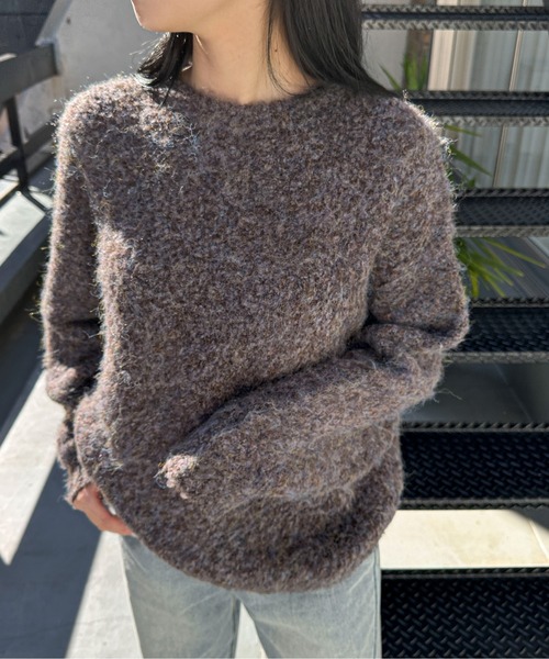 feepur by saya【大人気インフルエンサー@saya_e__wearさんとの24awコラボ新作!】◆Detail彩度高いカラー展開とメランジカラーのニュアンス感が大人かわいい印象のオーバーニット。表面に小さなループが散りばめられたブークレ糸を使用しているため、表面には凹凸感とふんわりとした起毛感があるのが特徴◎見た目の温かさに加えて、ウール混のため寒い冬にも大活躍間違いなしの一着です。ゆったりとオーバーサイズのシルエットにも関わらず、驚くほどの軽さで快適な着心地。ハイネックインナーやシャツとのレイヤードなどもおすすめです◎カラバリ豊富なのでお気に入りを見つけて、是非着回しをお楽しみください。◆Fabric--------------------------透け感:なし伸縮性:あり光沢:なし生地の厚さ:★★★★☆お手入れ方法:手洗い可--------------------------※この商品は、素材の特性上、着用の際ピリング(毛玉)が発生する場合があります。ピリングは引っ張って取ろうとせず、小さなハサミや毛玉取り器などを使用し丁寧に取り除いてください。※汗や水、摩擦により他のものに色移りすることがありますのでご注意ください。※濃色製品は色移りすることがありますので、他の物と分けて洗濯してください。※生産時期によりサイズや質感・色味に若干の個体差がみられる場合がございます。※商品画像は、光の当たり具合やパソコンなどの閲覧環境により、実際の色味と異なって見える場合がございます。予めご了承ください。※着用、お取り扱いの際は、商品についている品質表示とアテンションタグを必ずご確認ください。◆Information欲しいitemをお気に入り登録(♡マークをclick) ・お買いのがし対策…完売itemの再入荷やラスト1点の情報をお知らせ ・欲しいitemをお得にget…pricedownになったらいち早くお知らせ ・スムーズ検索…ZOZOのお気に入りアイテムページで簡単checkできるから、再検索不要♪