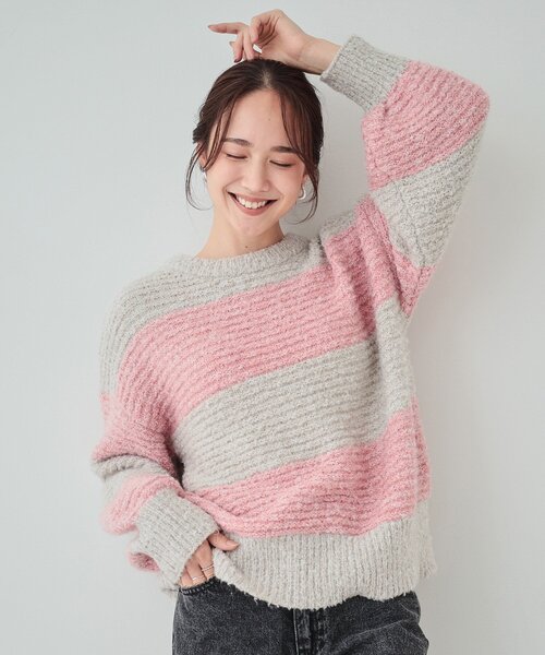 【デザイン】ブークレ調のふわふわの糸を使用したワイドボーダーニット。ガーター編みで立体感のある表面感がポイントです。身幅はほどよくゆとりがありながらも大きすぎないサイズ感で、ふんわりとしたお袖のデザインがメリハリがあり、女性らしいデザインです。太めのボーダーがコーデのアクセントに。インせず着られる長すぎない着丈もポイントです。【スタイリング】表面感があるざっくり編みのニットなので、カジュアルライクにデニム合わせや、長すぎない着丈を活かしてナロースカートと合わせていただくとすっきり見えするスタイリングに。【お客様からのレビュー】太ボーダーがハンパなく可愛い。おしりかくれるサイズ感です。(ブルーMサイズ購入/身長149 /普通体型)【素材】ブークレ調のくるくるとした毛足のふわふわタッチニットです。表情のあるガーター編みです。※照明の関係により、実際よりも色味が違って見える場合があります。また、パソコン・スマートフォンなどの環境により、若干製品と画像のカラーが異なる場合もございます。#CutieBlonde#Cutie#cutieblonde#cutie#キューティブロンド#キューティモデル情報:身長163cm B81 W59 H88 着用サイズ:02(M)店舗へのお問い合わせ商品番号:256-19306●製品寸法:01(S):着丈51cm B104cm 袖丈42cm 肩幅56cm02(M):着丈54cm B108cm 袖丈43cm 肩幅58cm03(L):着丈58cm B112cm 袖丈44cm 肩幅60cm04(LL):着丈62cm B116cm 袖丈46cm 肩幅62cm備考: