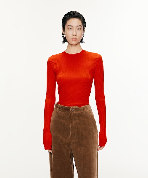 バックスタイルのカラーブロックが印象的なニットプルオーバーです。薄手で肌触りが良く、伸縮性のあるニット素材を使用しているため、快適な着心地が魅力。スリムフィットで、インナーとしても一枚でも活躍する便利なアイテムです。5O0312880 _x000D_ #ニット#カラーブロックスリムフィットニット#プルオーバー#セーター
