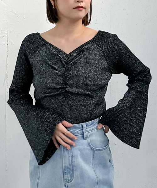 ■大人気のギャザーニットがバージョンアップ■ archivesで大人気だったフロントギャザーニットが進化して登場! より女性らしいシルエットで着こなせるようになりました。 首元は広めに開いたハートネック。 デコルテがスッキリと見え小顔効果◎ 伸縮性があるのでオフショルとえしても着て頂けます。 胸元に寄せたギャザーが着やせ効果抜群。 ラメが織り込まれた生地はチクチク感なくニットが苦手な方にもおすすめ。 袖はフレアスリーブでシルエットにワンポイント。 より女性らしい印象で着用頂けます。 ーーーーーーーーーーーーーーー 透け感:なし 裏地:なし 伸縮性:あり 光沢感:微光沢 生地厚さ:普通 洗濯方法:洗濯可(ネット使用) ※詳しいお手入れ方法は商品についているタグをご覧ください ーーーーーーーーーーーーーーー ※ご利用のモニター環境により、実際の色味と多少異なる場合がございます。 … information … 欲しいitemをお気に入り登録(♡マークをclick) ・お買いのがし対策…完売itemの再入荷やラスト1点の情報をお知らせ ・欲しいitemをお得にget…price downになったらいち早くお知らせ ・スムーズ検索…ZOZOのお気に入りアイテムページで簡単checkできるから、再検索不要♪